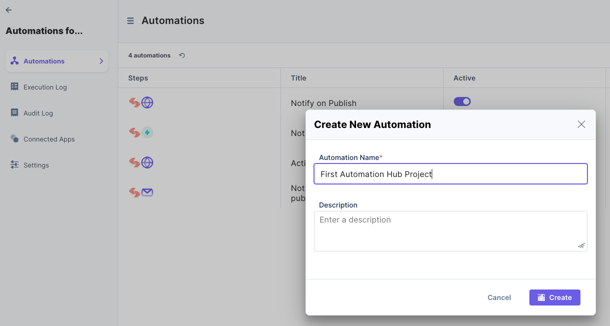 1. The Automation Hub Project contains one or more automations. The configuration settings and authorizations are shared within an Automation Hub project.