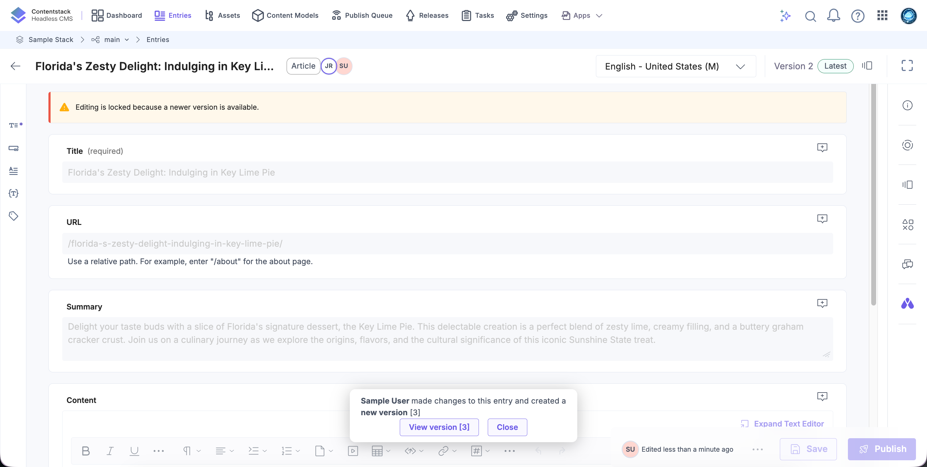 Real-Time Collaboration enables teams to edit shared entries safely and efficiently. With live presence indicators, field-level locking, draft persistence, and clear notifications, users can collaborate without overwriting changes or creating unnecessary versions.