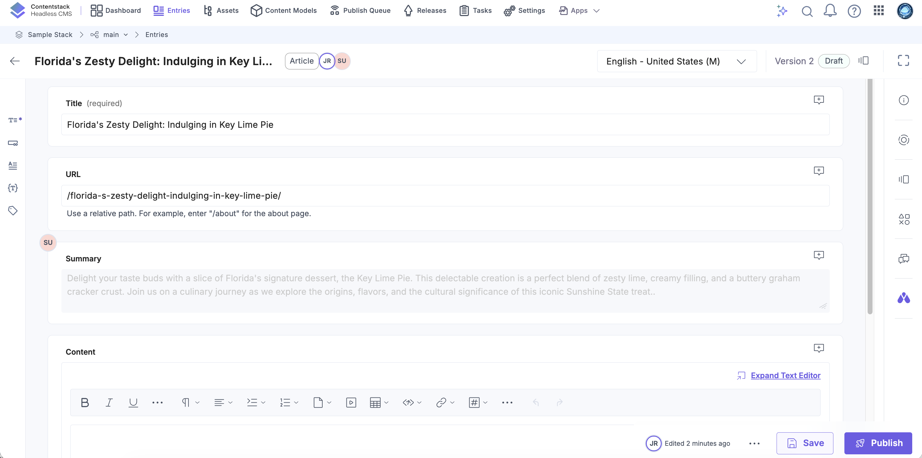 - Multiple content managers update the same entry