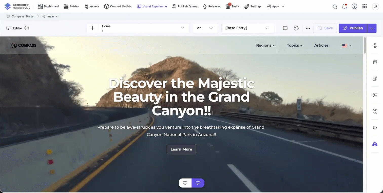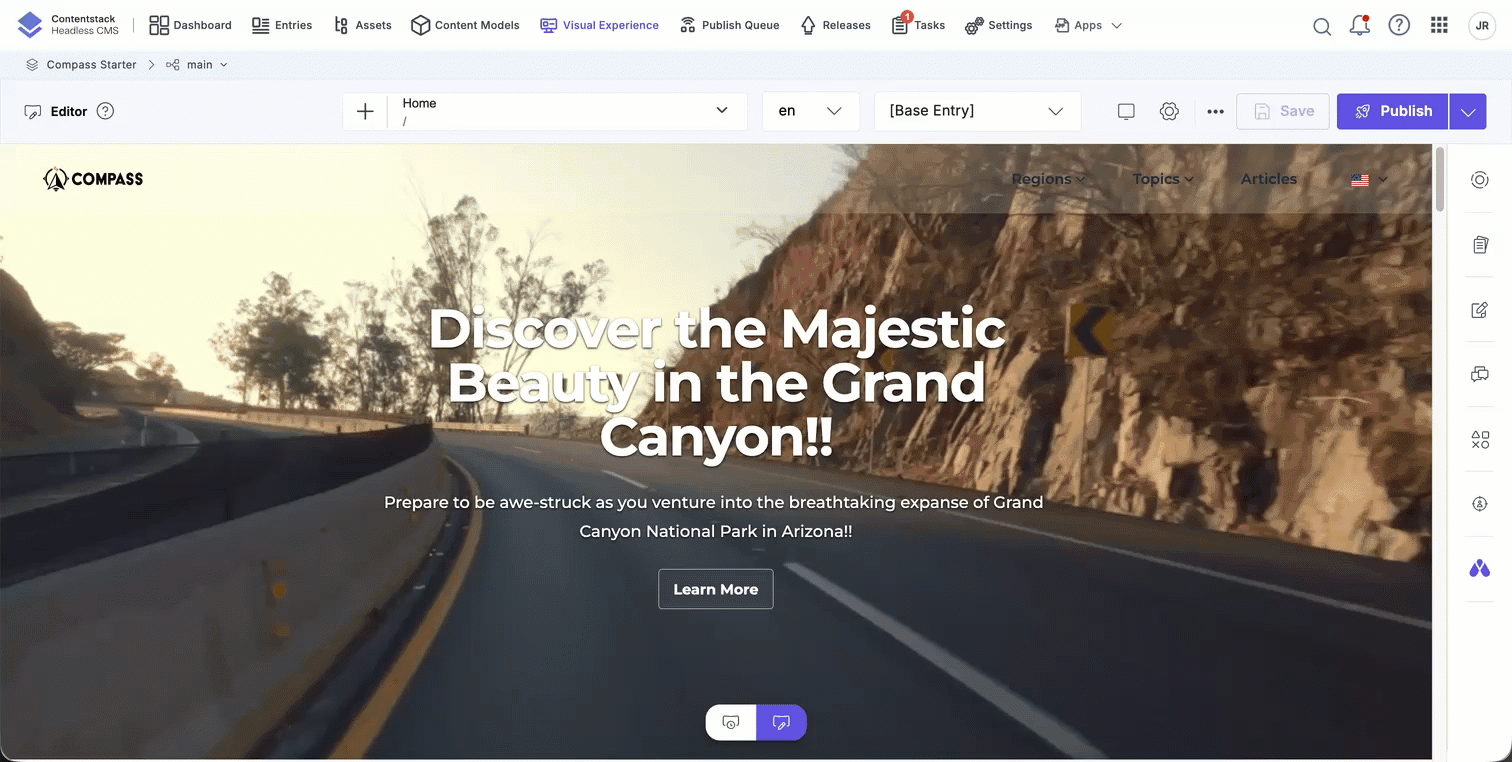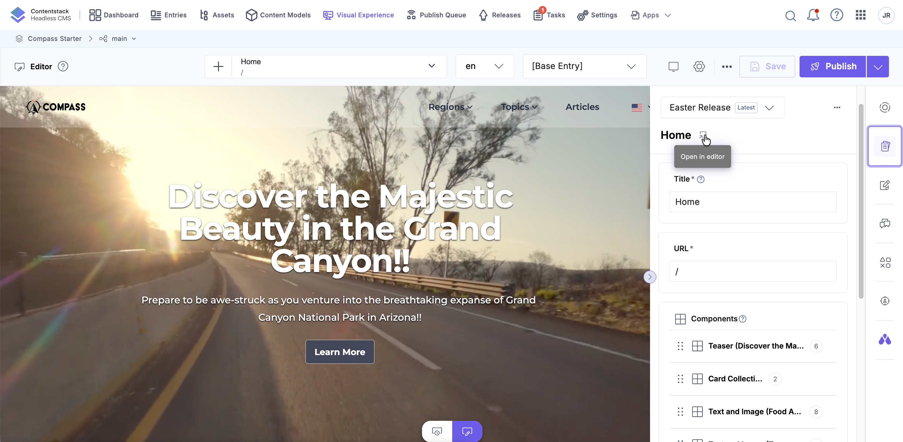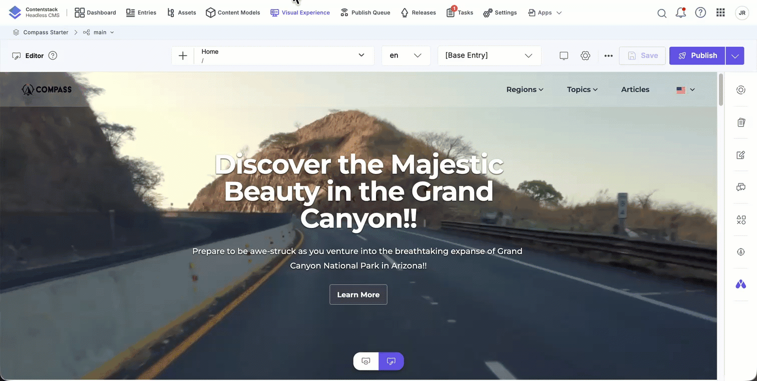The Form panel in Visual Editor lets you edit entries, manage versions, and perform entry-level actions, without leaving your page. As you make updates, changes are reflected instantly on the canvas for a faster, more intuitive editing experience.
