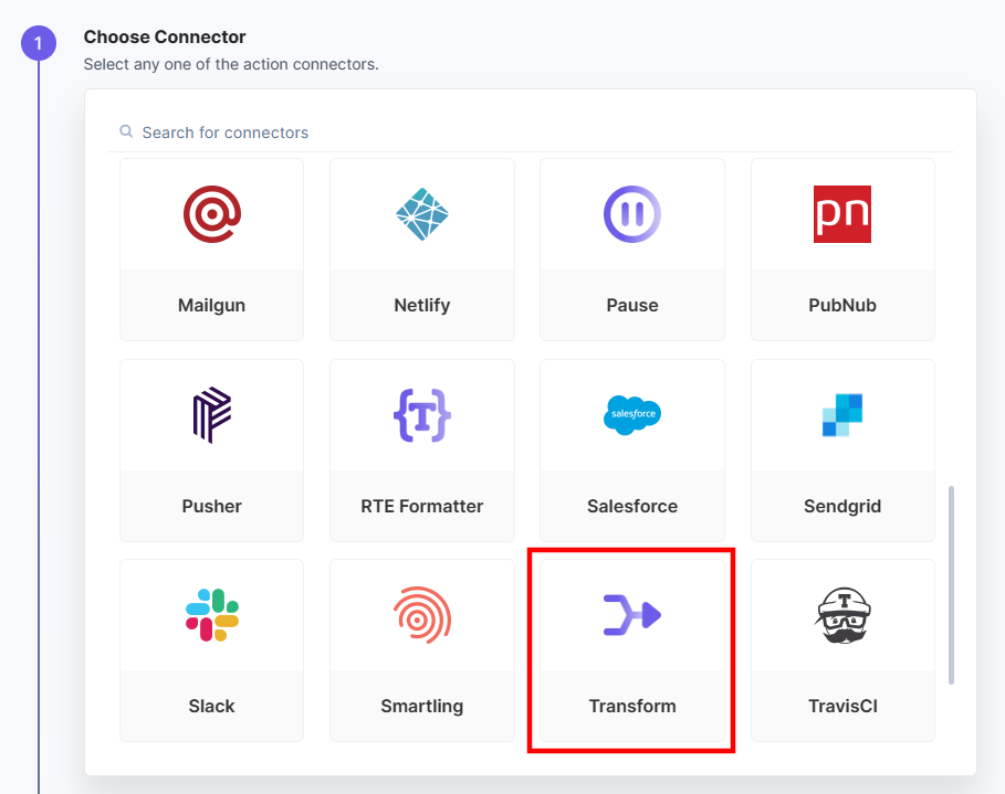 - Set Up the Transform Action: Once the above event triggers the Automations, it will modify the JSON code passed in the transformation box.