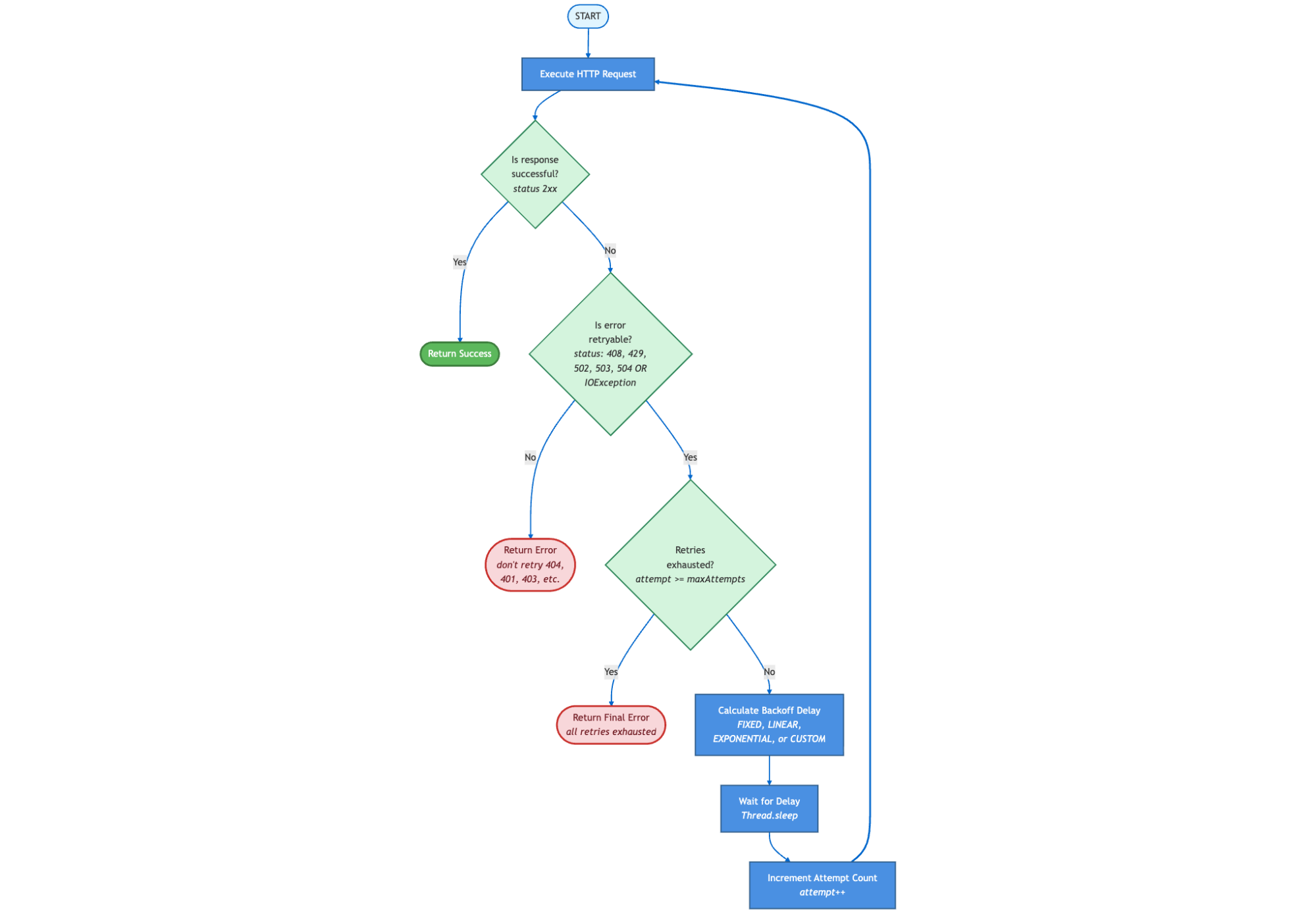 | retryEnabled | boolean | true | The master control switch activates or deactivates the entire retry functionality. When set to false, requests fail immediately without any retry attempts. |