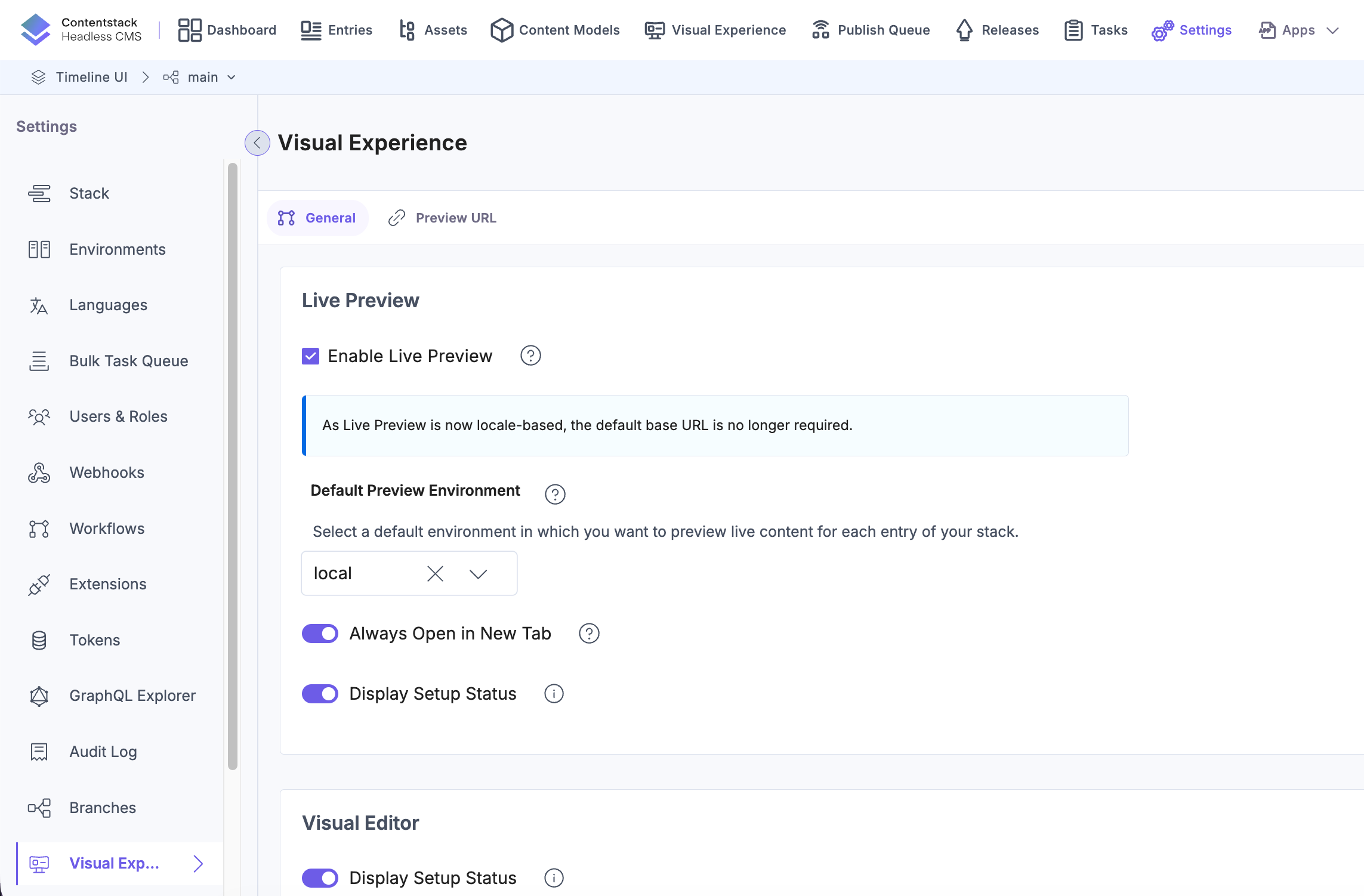 To set up Live Preview for the entries of your stack, perform the following steps:
