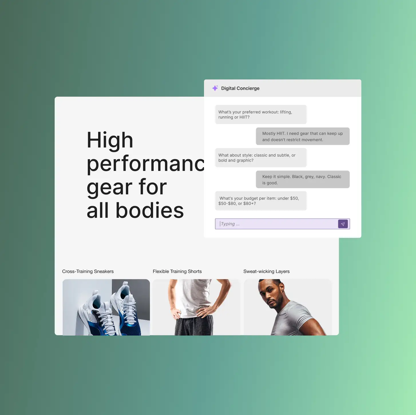 External conversational AI that website visitors can engage with: Visible and available across any page on your site. Custom designed to match your brand, tone, and visual style. Engages visitors with helpful, real-time responses powered by your content and data